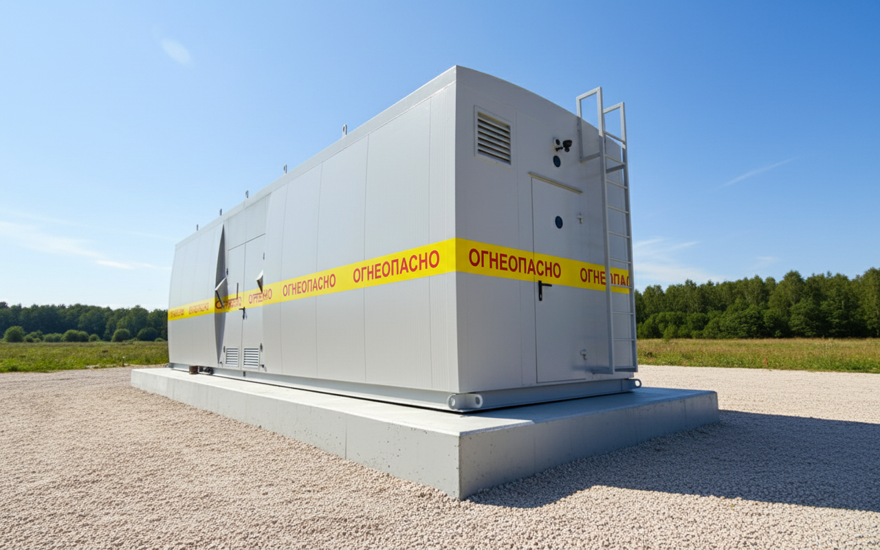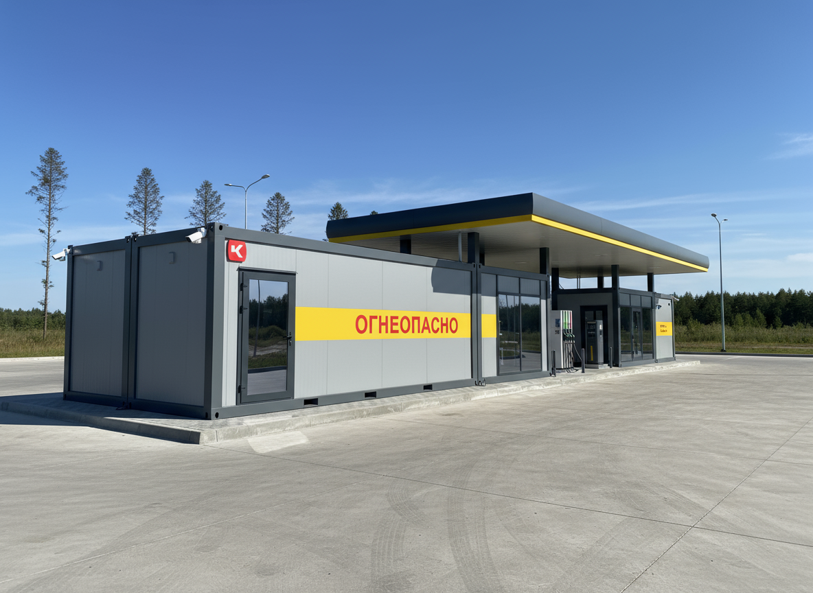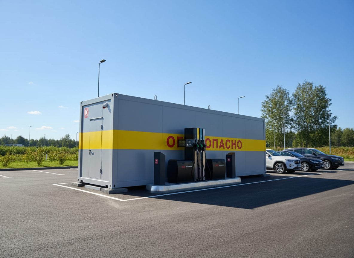 5.6. Контейнерная автозаправочная станция - АЗС, технологическая система которой предназначена для заправки транспортных средств только жидким моторным топливом и характеризуется надземным расположением резервуаров и размещением ТРК в контейнере хранения топлива, выполненном как единое заводское изделие.